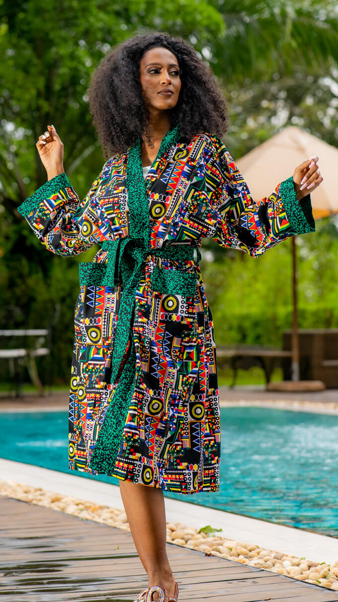 Snuggle up in the warmth and vibrant colors of our kitenge bathrobes. Treat yourself or gift someone specil with a little luxury. 100% Cotton: Soft, breathable, and gentle on your skin. Plush and Absorbent:Quickly absorbs moisture, keeping you cozy and dry. Unisex Design: Stylish fits for both men and women. Perfect for: Lounging, poolside, post-shower, or a cozy gift.