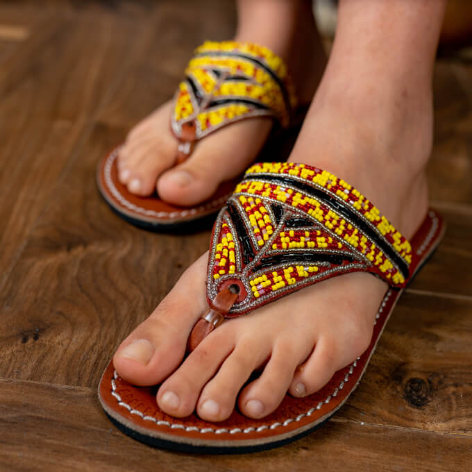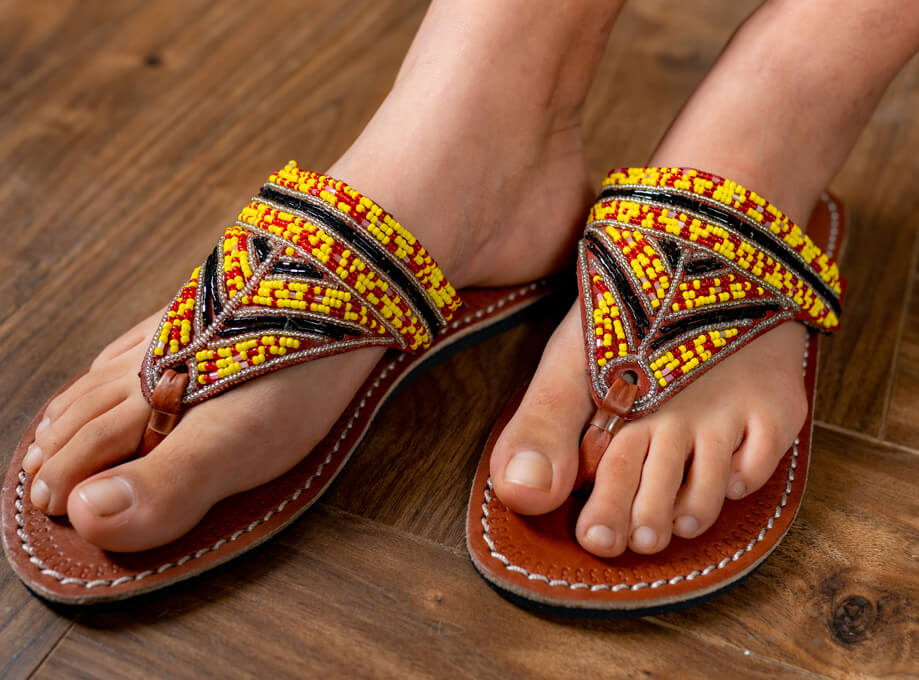Add a pop of African flair to your footwear with our vibrant beaded sandals!