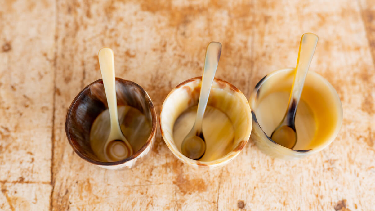 Enhance your culinary space with our Ankole horn spice holders. These stylish containers add a touch of rustic charm to your kitchen.
