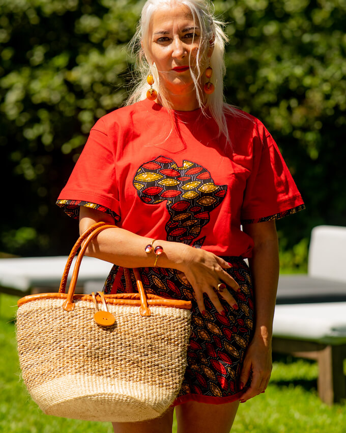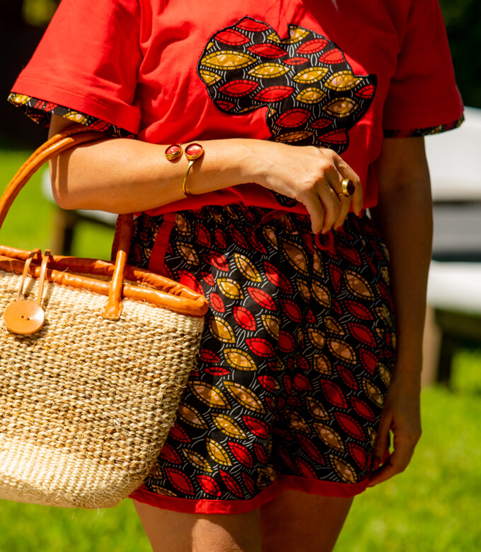 Elevate your wardrobe with stunning cotton T-shirts and shorts, beautifully crafted from vibrant Kitenge fabric.
