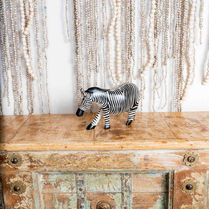Zebra is an iconic symbol of the African savannah, found in the grasslands and plains of Eastern and Southern Africa. Our wooden zebra is tribute to the beauty and wonder of African wildlife. Each piece of wood has its own distinct pattern, making every zebra truly on-of a-kind.